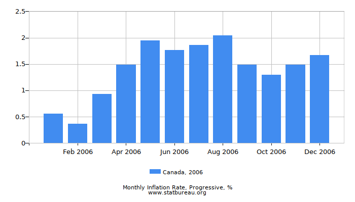 In 2006 Canada ranked #4 in the world by yearly inflation rate.