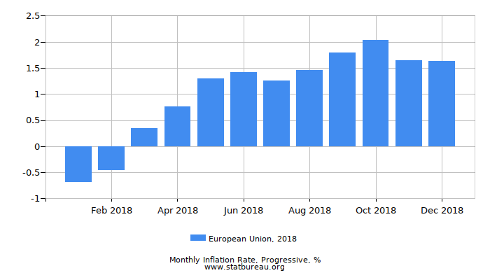 In 2018 EU ranked #7 in the world by yearly inflation rate.