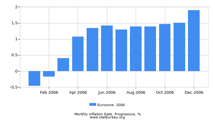 In 2006 Eurozone ranked #5 in the world by yearly inflation rate.