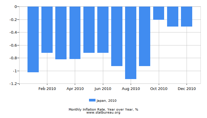 In 2010 Japan ranked #1 in the world by yearly inflation rate.