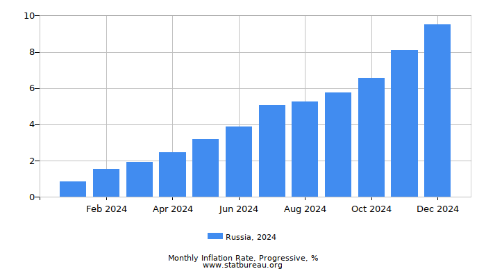 In 2024 Russia ranked #1 in the world by yearly inflation rate.