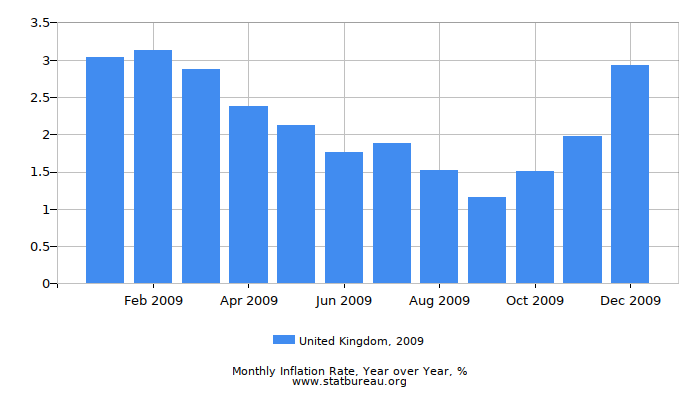 In 2009 UK ranked #10 in the world by yearly inflation rate.