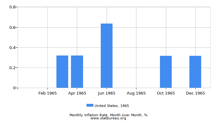Inflation rate in the United States was 1.92% in 1965. That is 0.95 more than it was in the preceding 1964 and 1.54% less than in the following year of 1966.