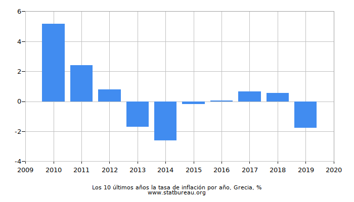 A continuación se presentan los gráficos que muestran la tasa de inflación anual en Grecia. Todos ellos se basan en los datos de la página de Tablas Inflación.
