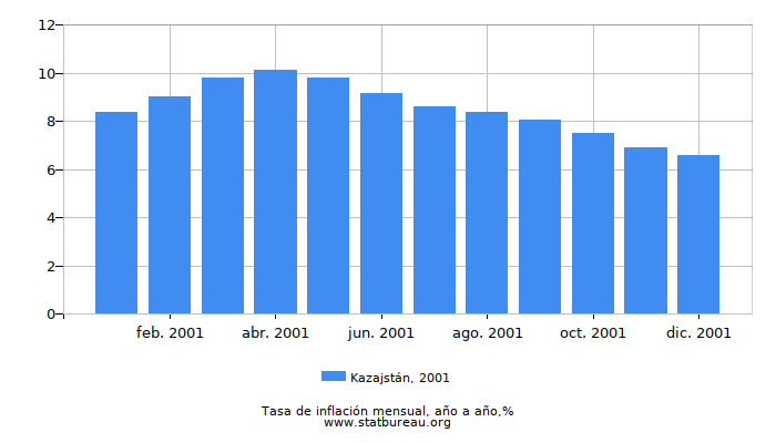 En 2001 Kazajstán ocupó el #14 en el mundo por la tasa de inflación anual.