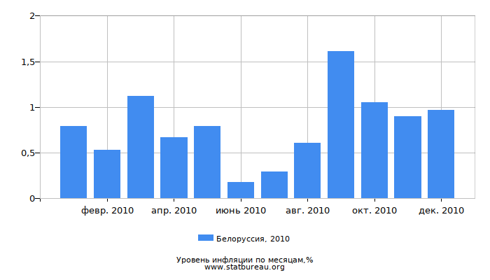 В 2010 Белоруссия занимала 18 место по уровню инфляции в мире.