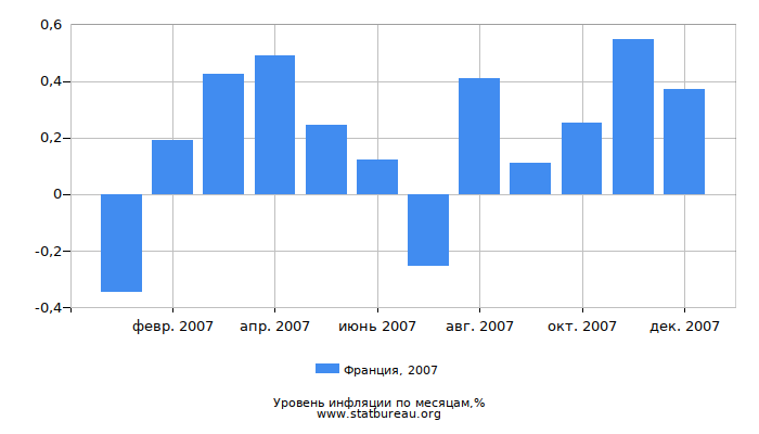 В 2007 Франция занимала 4 место по уровню инфляции в мире.