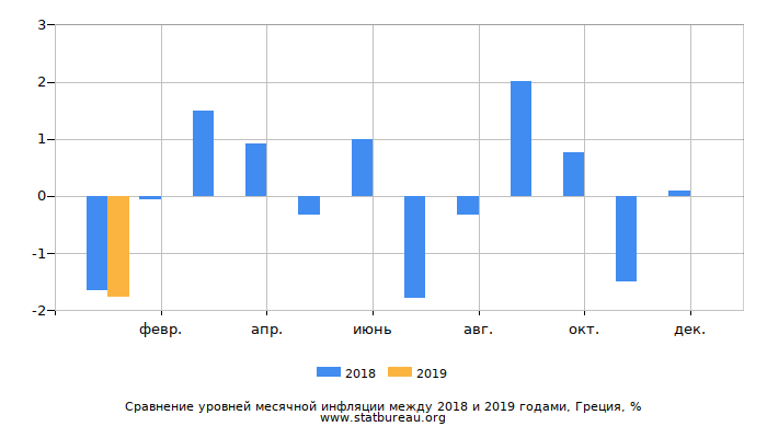 Ниже представлены графики месячной инфляции в Греции (от начала месяца до его конца). Все графики основаны на данных, которые приведены на странице Таблицы Инфляции.