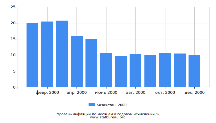 В 2000 Казахстан занимала 14 место по уровню инфляции в мире.